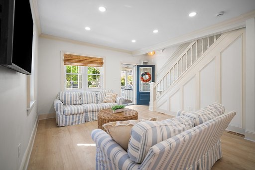 The entire first floor is a welcoming open space with a brand new kitchen, plenty of natural light and a bonus back mudroom for after the beach convenience. Speaking of entertainment- five bedrooms and 3 bathrooms offer plenty of room for family and guests.